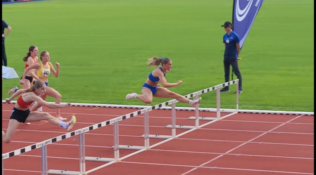 Bei den parallel stattfindenden Süddeutschen Meisterschaften der Aktiven und U18 in St. Wendel ging Marleen Simon in ihrer Paradedisziplin den 100 Meter Hürden an den Start. Im Vorlauf legte sie einen blitzsauberen Lauf hin und steigerte ihre Bestleistung und damit auch den Kreisrekord und den LG-Rekord auf 13,79 sec. Leider verpatzte sie im Endlauf den Anlauf zur 1. Hürde und musste dann den ersten Abstand im ungewohnten 4er-Rhythmus laufen, um dann erst in de 3er Rhythmus zu wechseln. Trotz dieser Fehler belegte sie einen Vierten Platz und mit 14,11 sec. eine Zeit, die sie sich zum Anfang der Saison bestimmt erwünscht hätte. Bei der DM in zwei Wochen ist also Potential für noch bessere Zeiten vorhanden.