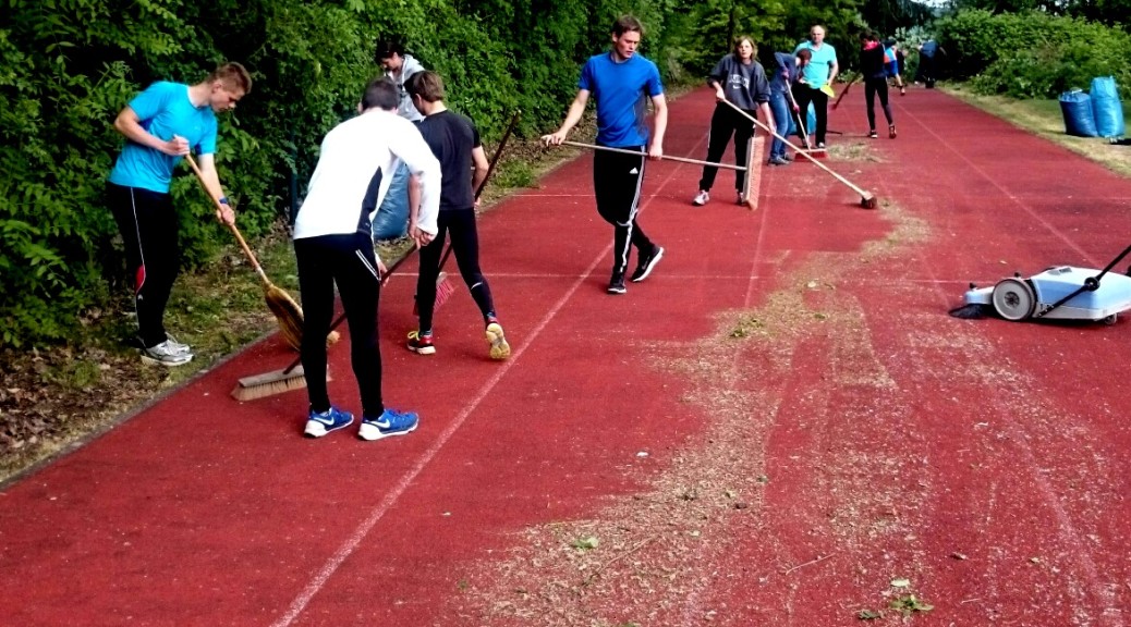 Über 30 fleißige Helfer fanden sich am Mittwoch zu einer großen Aufräumaktion auf dem Sportgelände in Frickhofen ein. Mit großem und mit kleinem Geräte wurden Weitsprunggrube, Kugelstoßring, Hochsprunganlage und vor allem die Laufbahn und der Kunststoffplatz gesäubert.  Den Athleten, Übungsleitern, Eltern und Freunde der LG sei von dieser Stelle ein herzliches DANKESCHÖN gesagt! Tolle Trainingseinheiten und der Sprintcup am 08.06.2016 können kommen!